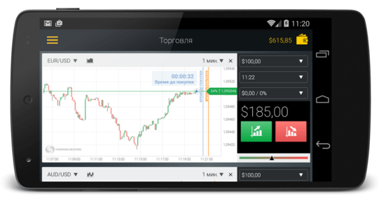 Мобильное приложение имеет урезанный функционал по сравнению с полноценной веб-версией, однако в нем доступны самые востребованные инструменты — Binary, 60 Sec, Pairs, Long Term и One Touch. Мобильная платформа позволяет трейдерам не ограничивать себя в возможностях для заработка: имея смартфон под рукой, вы можете совершать выгодные сделки днем или ночью, где бы вы ни находились.