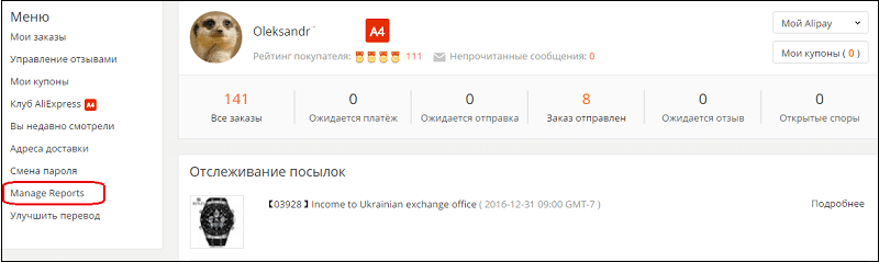 Для того чтобы отследить этап рассмотрения претензии, необходимо открыть «My reports» , «Manage Reports» . Покупатель также может обратиться с жалобой на электронную почту AliExpress.