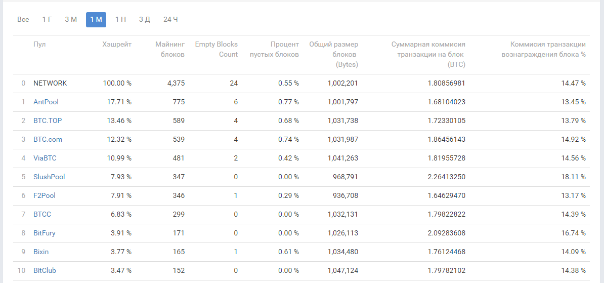 Как было сказано в предыдущей главе майнинговых пулов, добывающих биткоин, не так много. На сайте btc.com можно найти описание каждого из них.